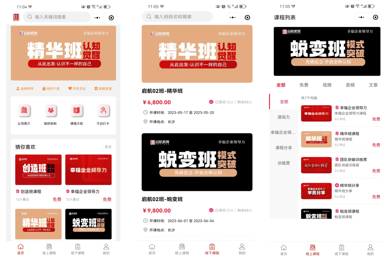 《心启航在线学习平台》是一个集课程、作业等多种功能于一体的综合性学习平台。我们的课程内容涵盖了幸福企业领导力的多个阶段的课程,包括精华班、蜕变班、创造班等。我们的课程和作业都是由资深导师精心编写录制,内容丰富、系统全面,能够满足企业学员的不同需求和水平。我们的考试系统采用了先进的技术手段,能够准确地评估学生的学习成果和水平。